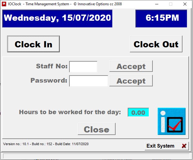 ioClockWS can be run on any number of work stations, preferably within a fairly controlled environment, such as reception, workshop foreman’s office, admin office, etc. in order to try and eliminate the potential of staff members clocking on behalf of themselves as well as a colleague.