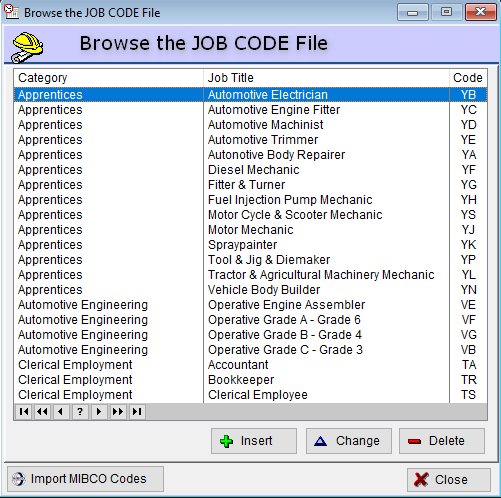 ioClock permits you to enter any job (occupation) codes of your choice, you may make up your own codes or use the official MIBCO job classification codes (which are pre-loaded in the system).