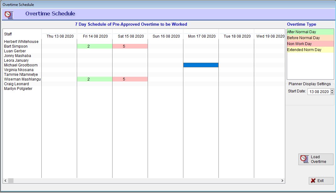 To assist in planning overtime a visual Overtime Schedule has been added to the system.